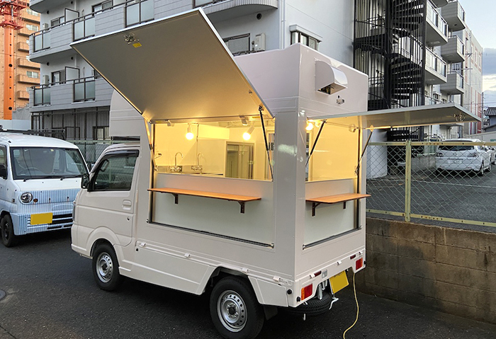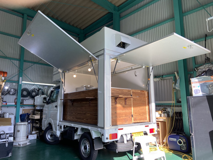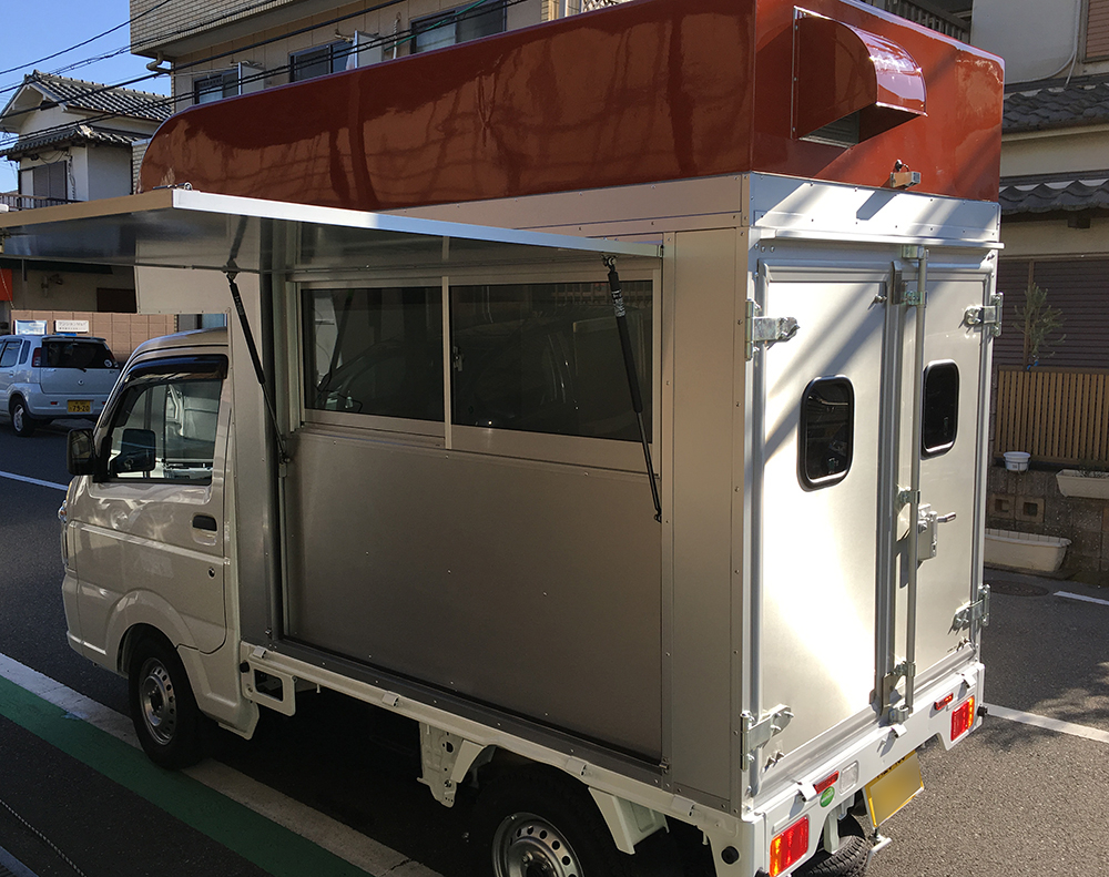 日本財団の補助金にて製作の軽トラックを普通車登録に変更した移動販売車です。