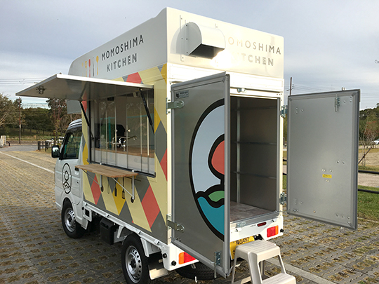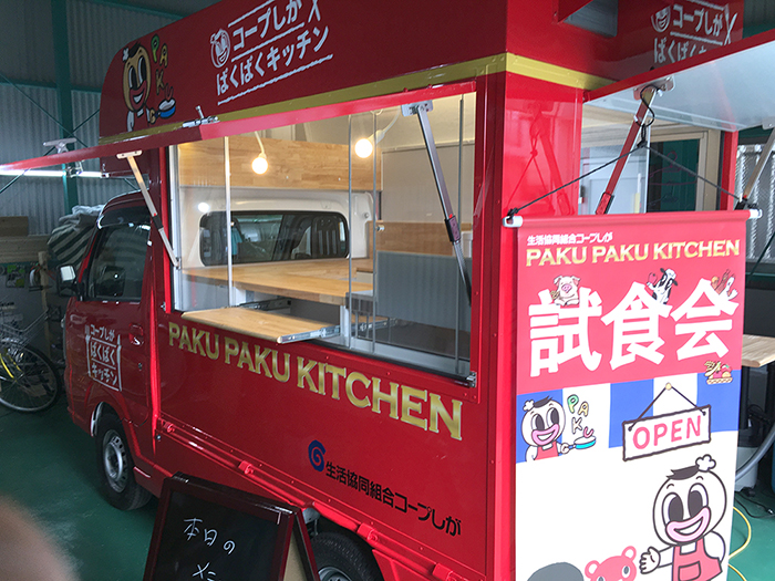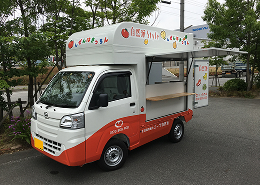 コープ自然派四国のオリジナル商品試食用の移動販売車です。