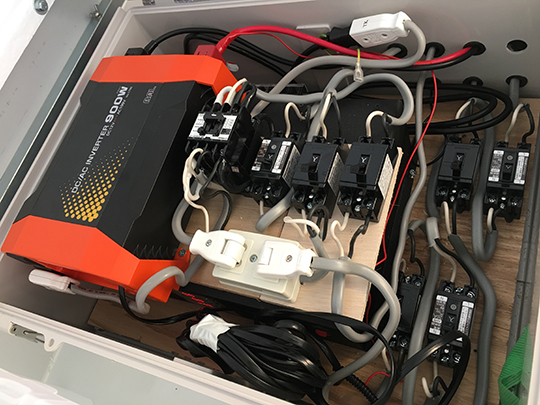 100V機器を4000W程度使用するので20A3系統で。サブバッテリーと連動の